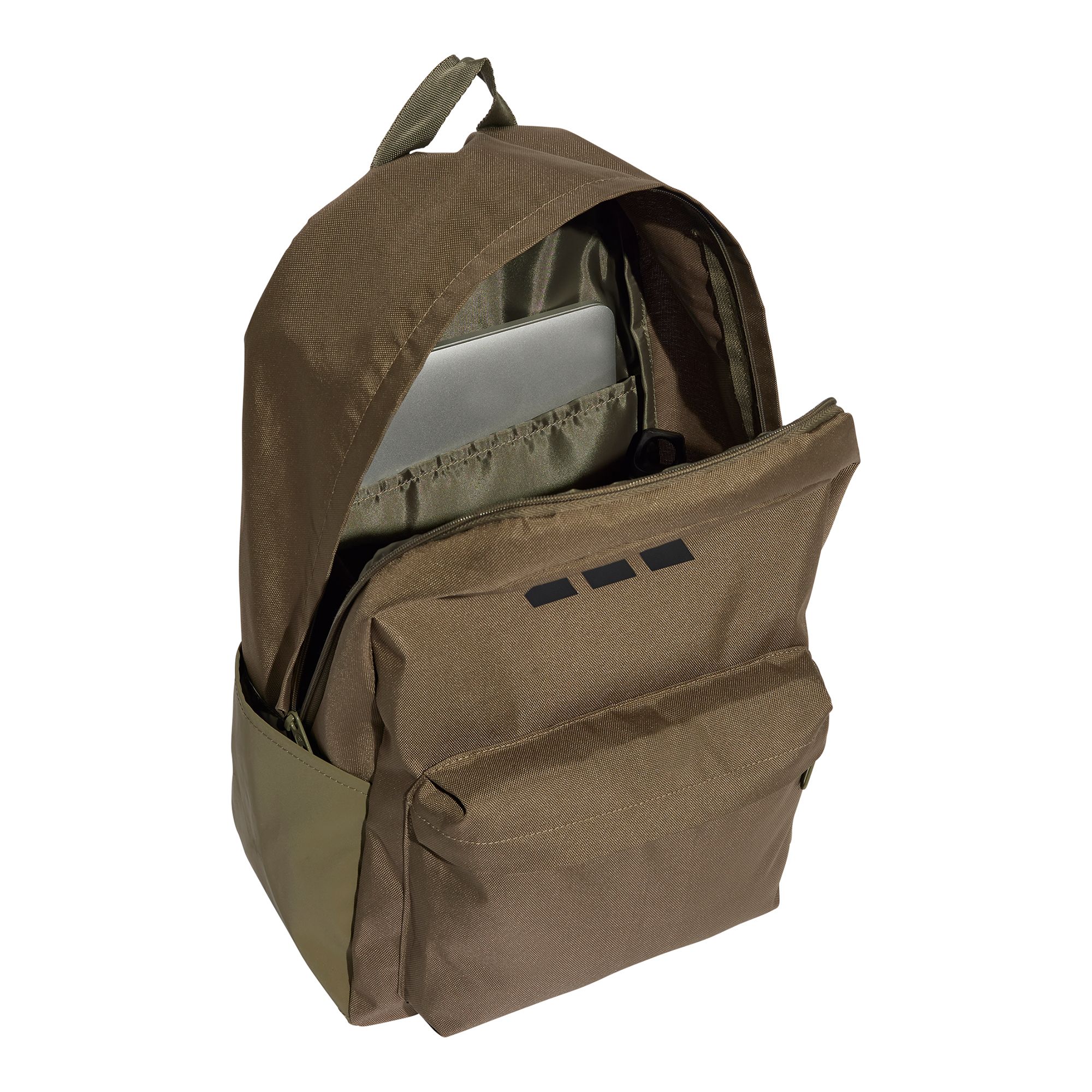 Vart dagen än tar dig håller den här ryggsäcken från adidas jämna steg. Vadderade remmar fördelar vikten av böcker eller gymutrustning på ett bekvämt sätt. Stoppa vattenflaskan i sidofickorna och mobilen i framfickan med dragkedja för enkel åtkomst. 3 Bar-loggan visar adidas-stolthet.
