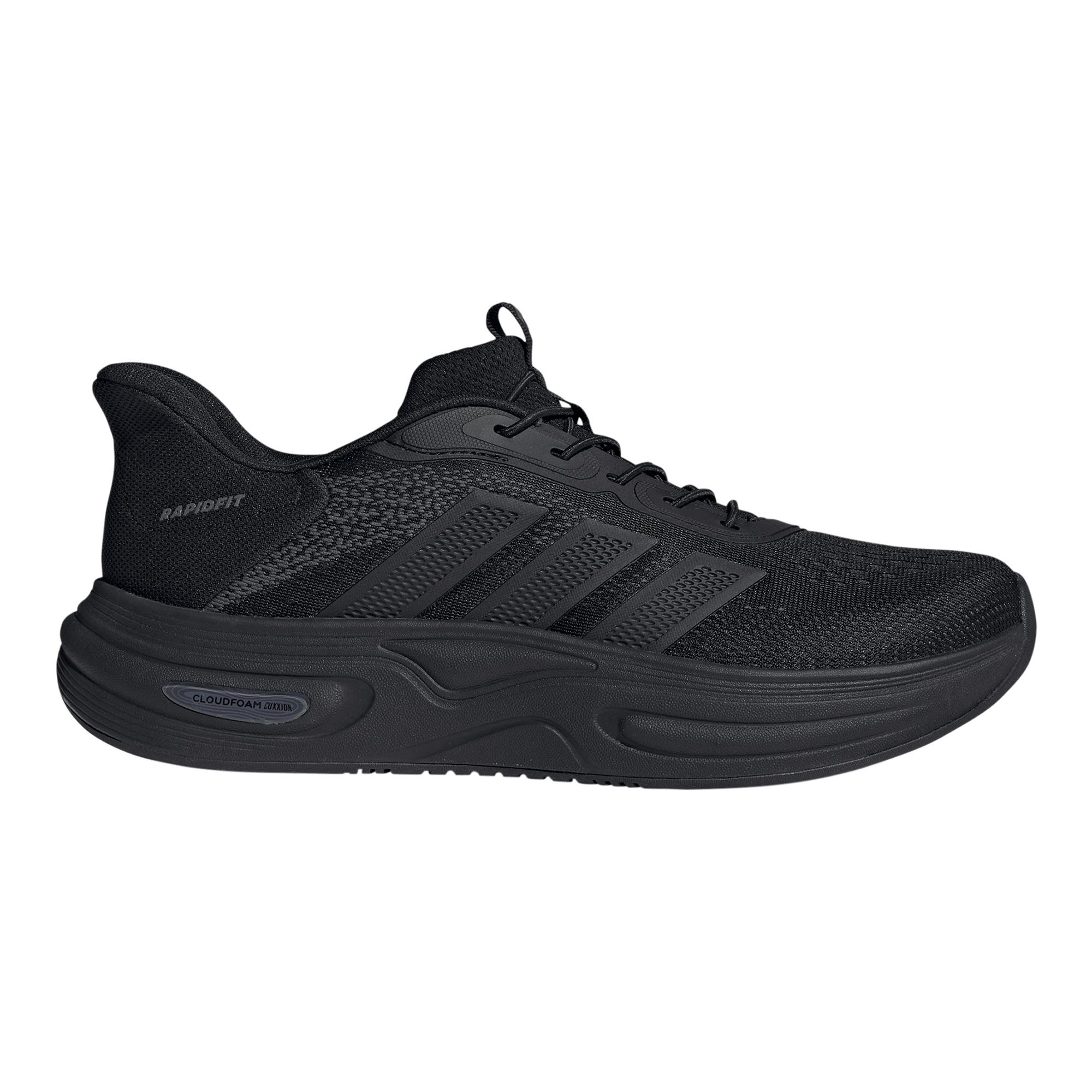 Adidas Cloudfoam Cuxxion Rapidfit Shoes M kombinerar futuristisk design med överlägsen komfort för vardagens promenader. Med step-in-design och Rapidfit-hälkopp får du en flexibel passform som sitter bekvämt hela dagen. Den höga Cloudfoam-mellansulan ger stöd för fotvalvet och effektiv stötdämpning som skyddar under foten. Den breda passformen och de elastiska snörena gör skorna smidiga att ta på och sköna att bära även under längre turer. Adiwear-yttersulan ger grepp och slitstyrka, vilket gör modellen till ett pålitligt val oavsett underlag. De ikoniska 3-Stripes och adidas Sportswear-loggan på plösen skapar en stilren look som kombinerar vardagsstil med praktisk funktion.