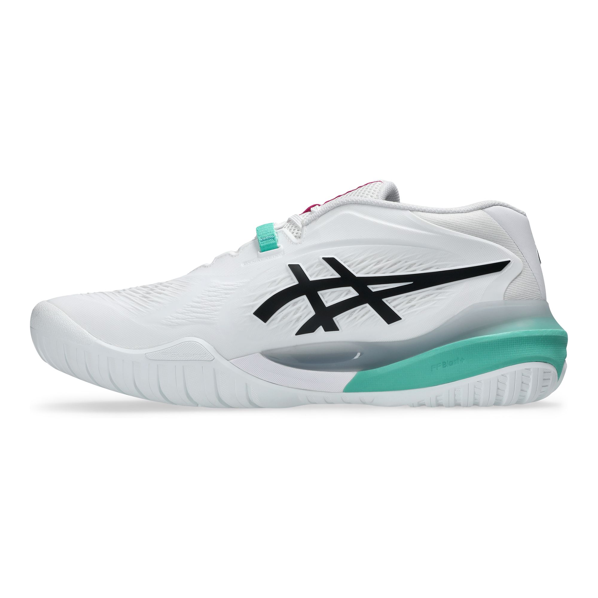 DYNAWALL-tekniken stabiliserar sidledsrörelserna och hjälper dig snabbt tillbaka i rätt position, medan det adaptiva DYNALACING-systemet fixerar foten effektivt utan att kompromissa med komforten. Den omdesignade FF BLAST PLUS ECO-dämpningen ger en mjuk och responsiv känsla genom hela matchen, samtidigt som forefoot GEL ger effektiv stötdämpning vid landningar. Kombinationen av slitstarka material och en separerad yttersula skapar ett pålitligt grepp och god stabilitet även vid snabba stopp och starter.