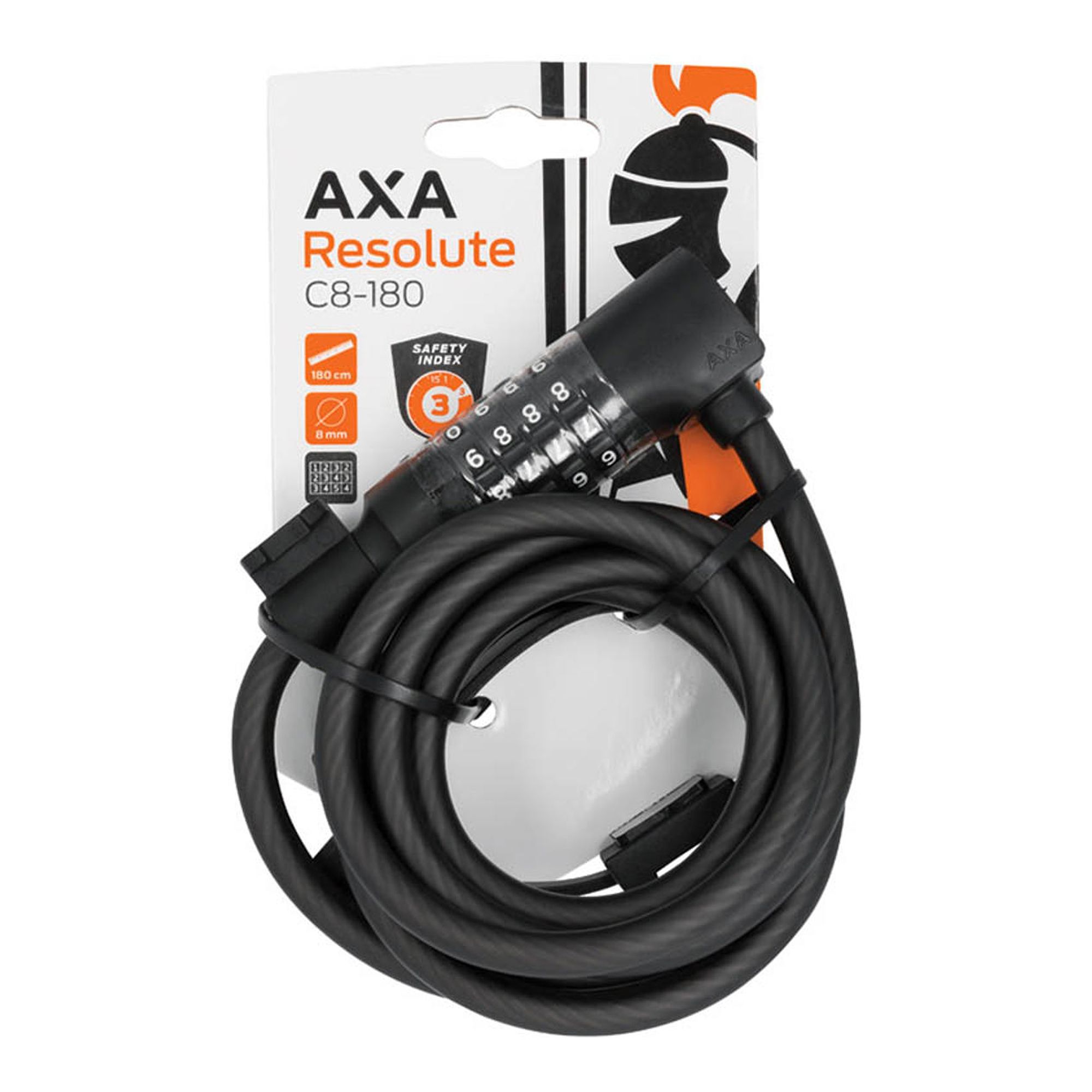 AXA Cable Resolute C8-180 är ett praktiskt och användarvänligt vajerlås för dig som vill ha enkel och smidig säkerhet i vardagen. Låset är utrustat med en ställbar 4-siffrig kod, vilket gör att du slipper nycklar och istället kan välja en personlig kombination som passar dig. Den 180 cm långa vajern ger gott om räckvidd för att låsa fast cykeln vid stolpar, cykelställ eller andra fasta objekt, medan den 8 mm tjocka stålwiren ger ett grundläggande skydd vid korttidsparkering. Låset levereras med ett fäste för montering på ramen, så att du enkelt kan ta med det på varje tur. AXA Resolute C8-180 fungerar utmärkt som ett fristående lås för snabbärenden eller som ett extra komplement till ett kraftigare huvudlås för ökad trygghet.