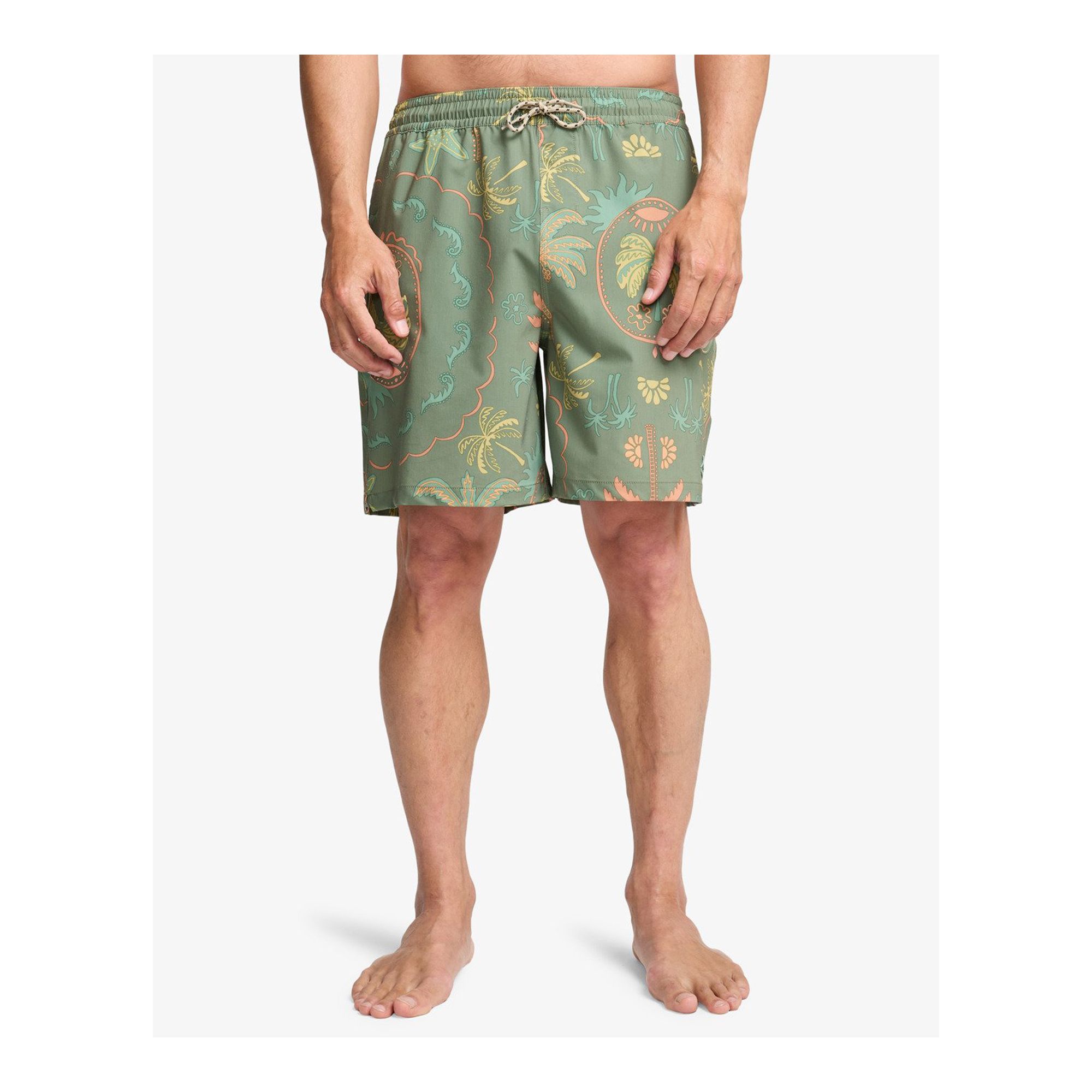 Bekväma badshorts med elastisk midja och snabbtorkande material för strand och sommaraktiviteter.