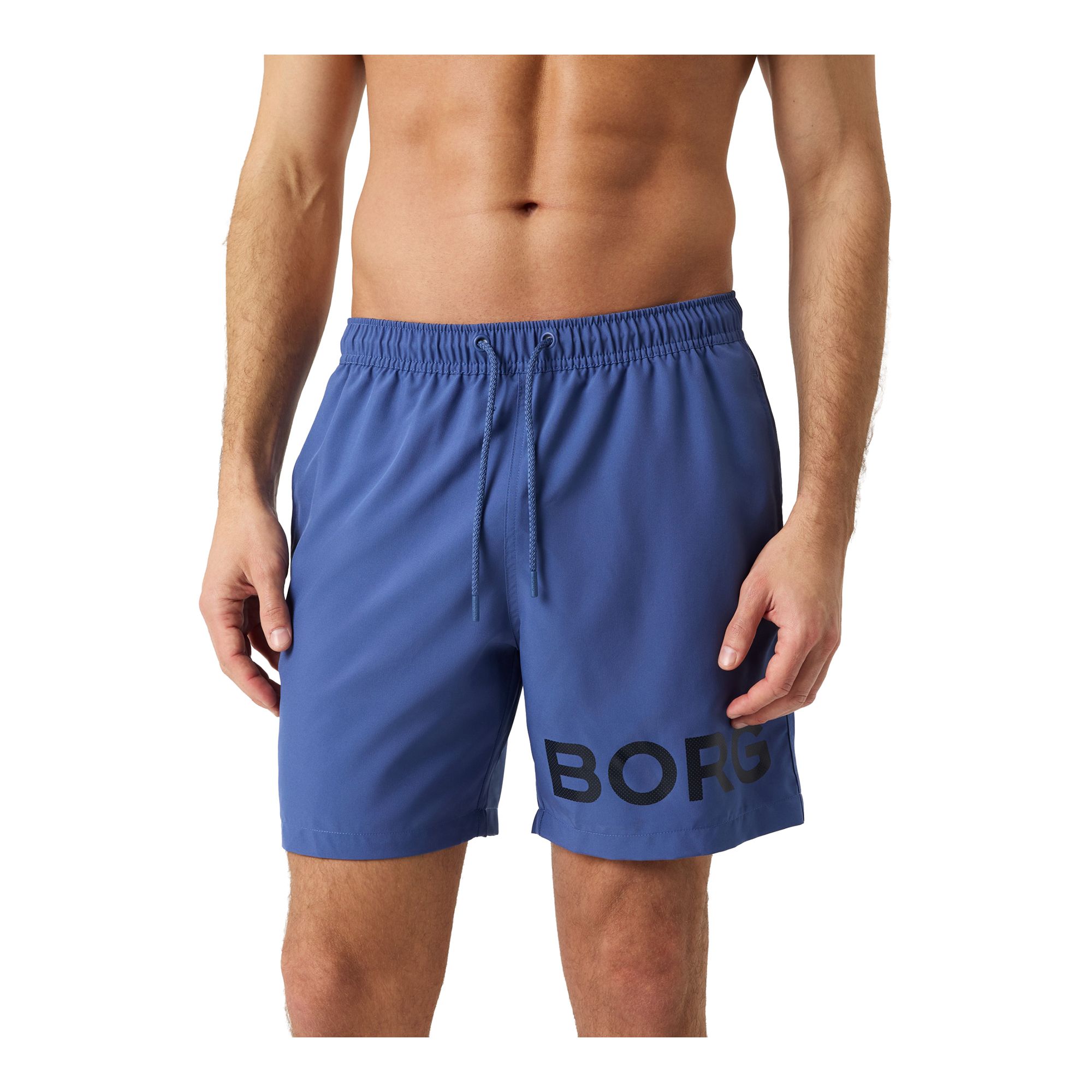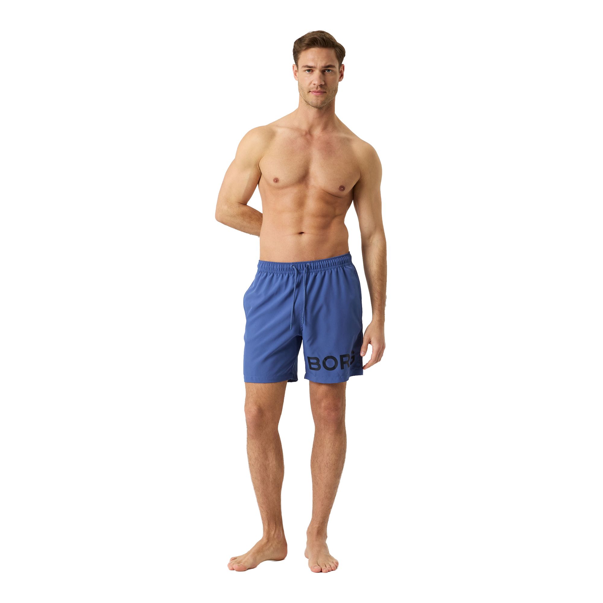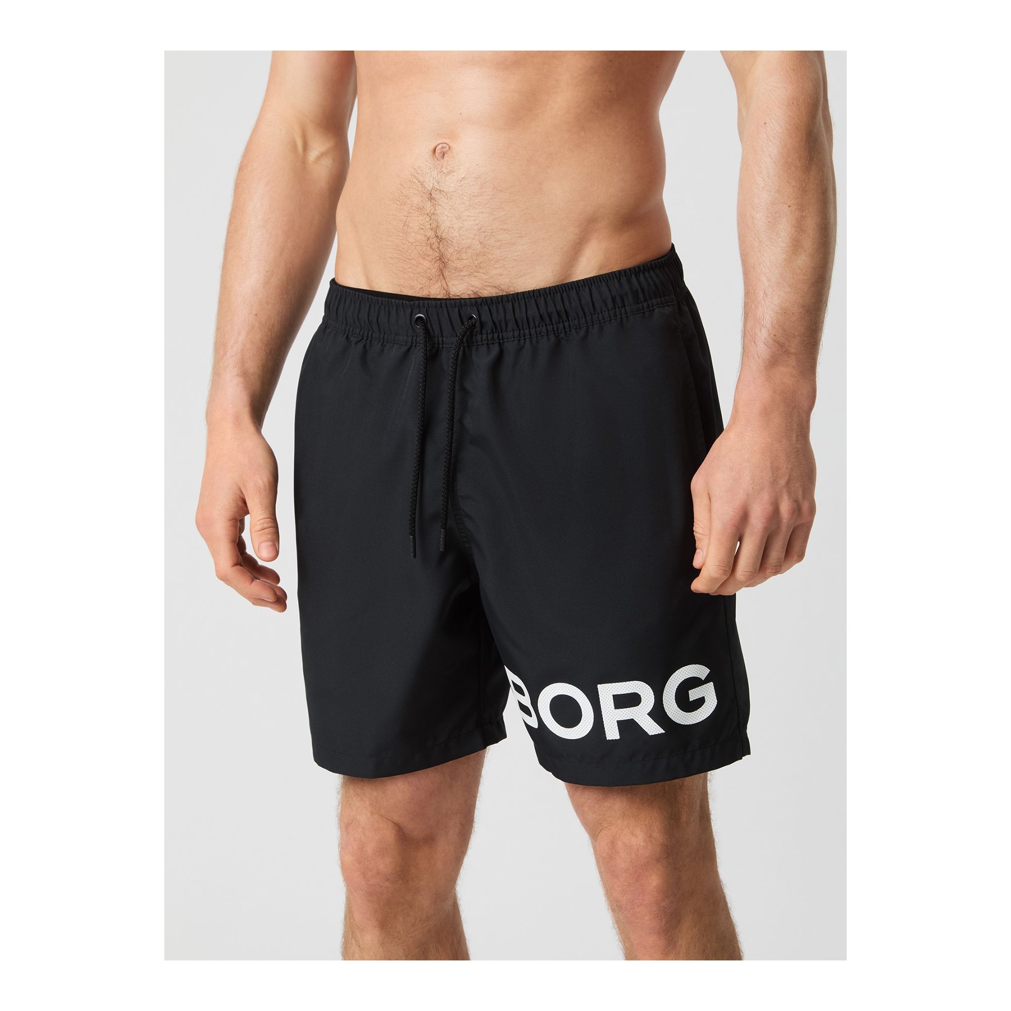 Björn Borg Borg Swim Shorts för herrar tillverkade av återvunnen 100% polyester behandlad med en fukttransporterande funktion för en snabbare torkning. De har en normal passform och har innerbyxor i mesh, fickor på sidorna och en bakficka för att hålla dina tillhörigheter säkra. Med resår och dragsko runt midjan för enkel justering och ett stort Borg-logotryck på benet.