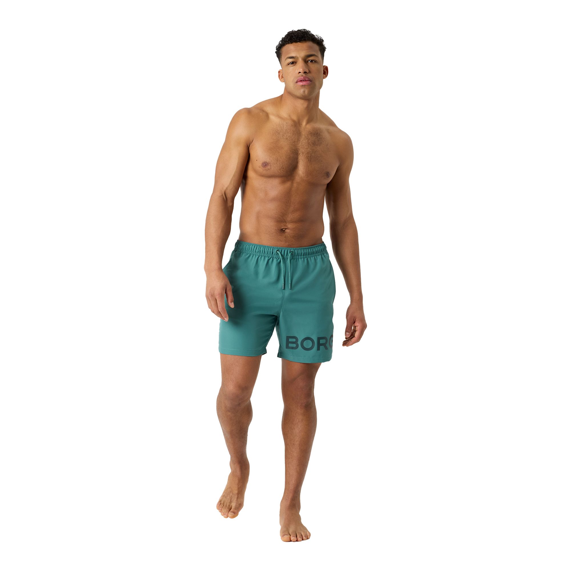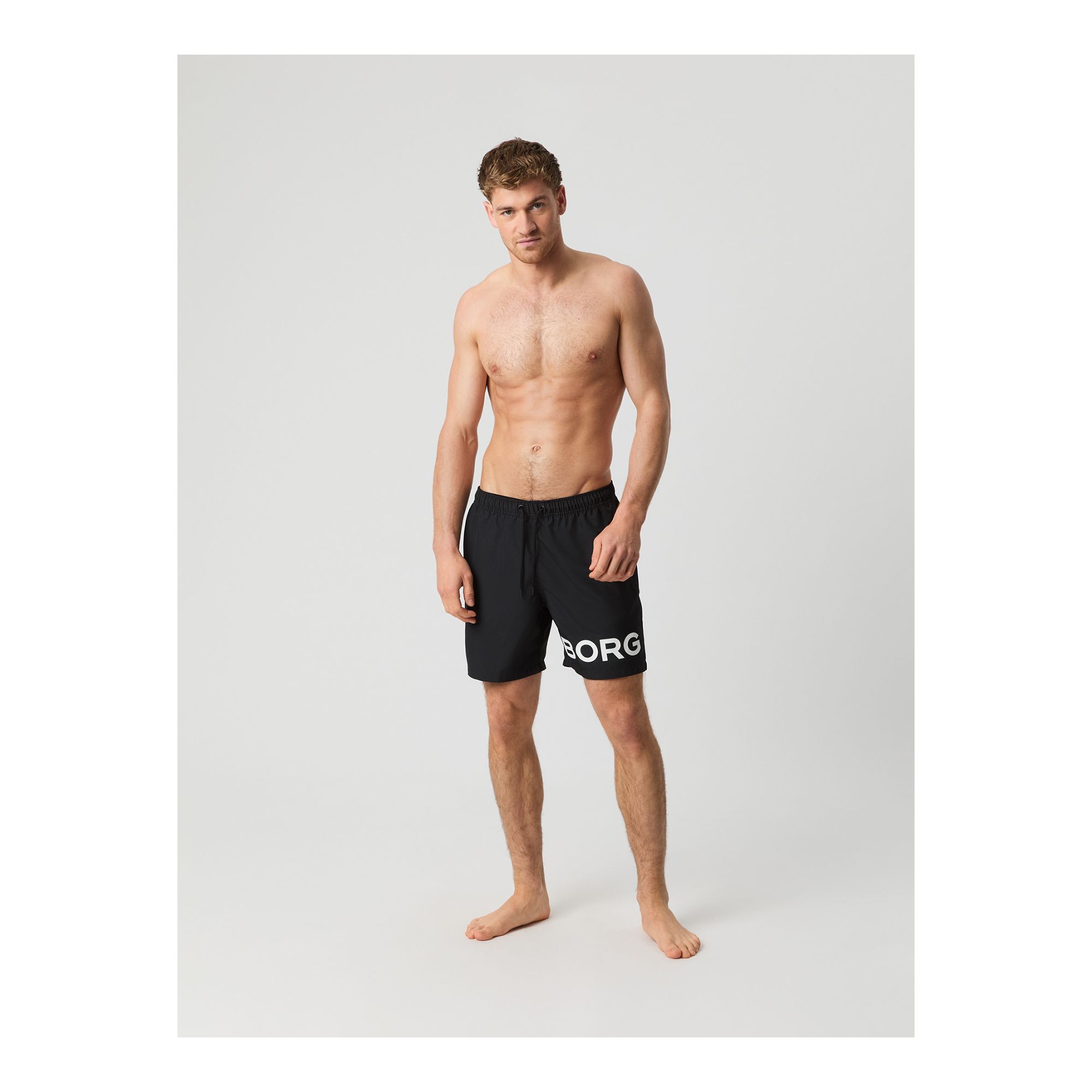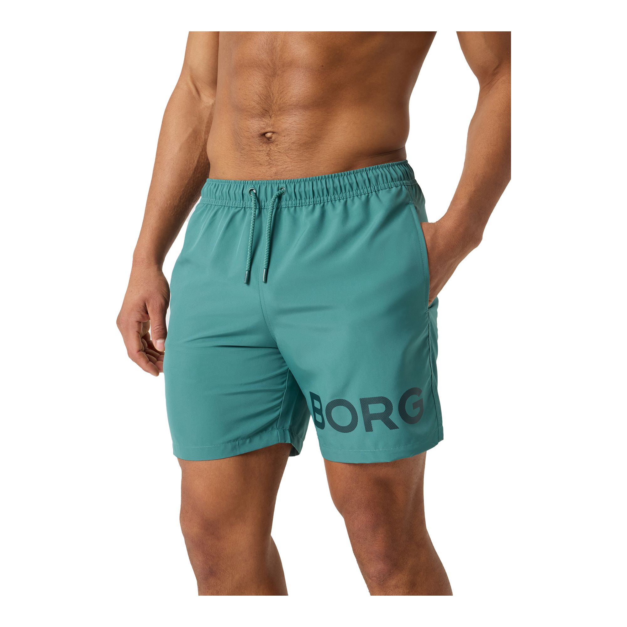 Björn Borg Borg Swim Shorts för herrar tillverkade av återvunnen 100% polyester behandlad med en fukttransporterande funktion för en snabbare torkning. De har en normal passform och har innerbyxor i mesh, fickor på sidorna och en bakficka för att hålla dina tillhörigheter säkra. Med resår och dragsko runt midjan för enkel justering och ett stort Borg-logotryck på benet.