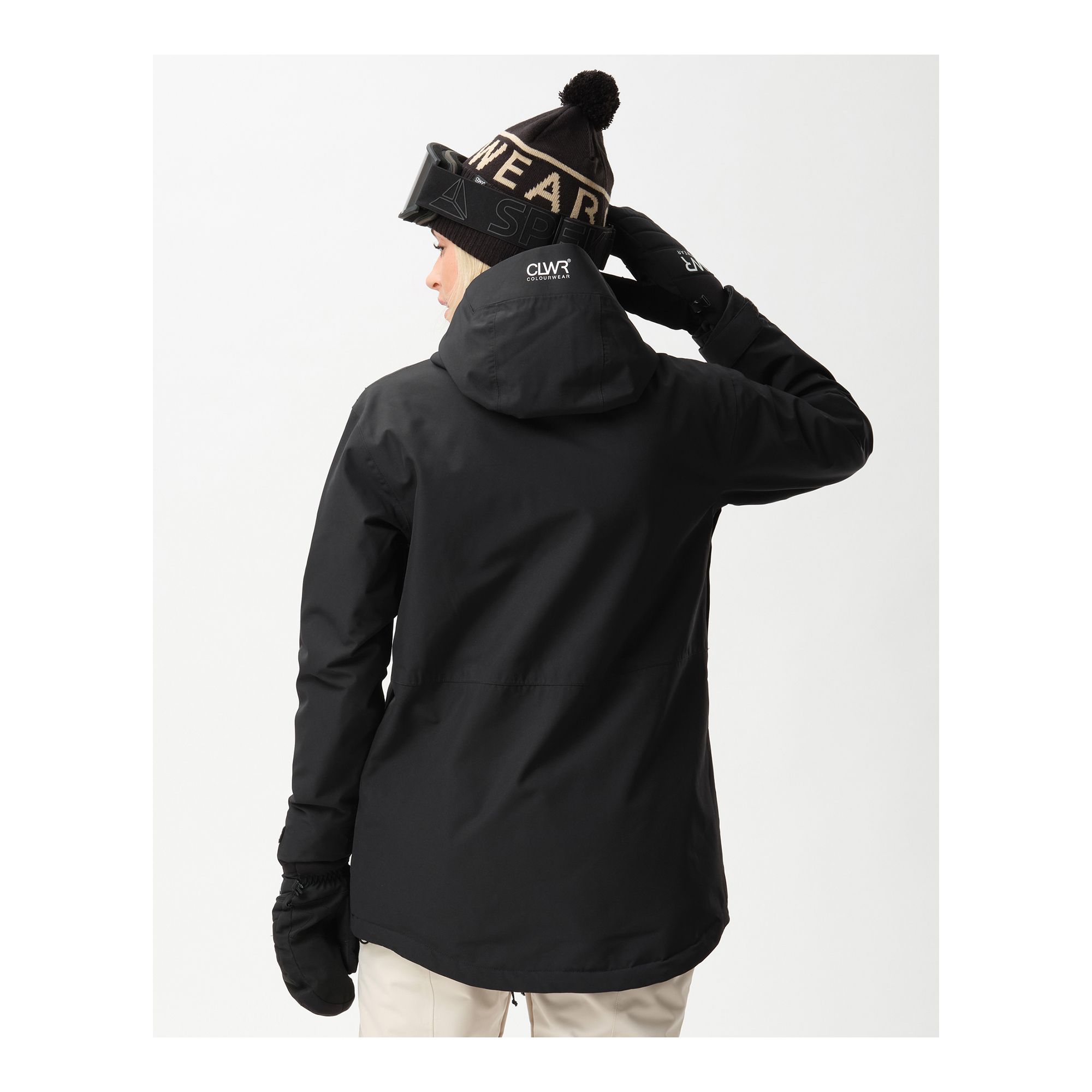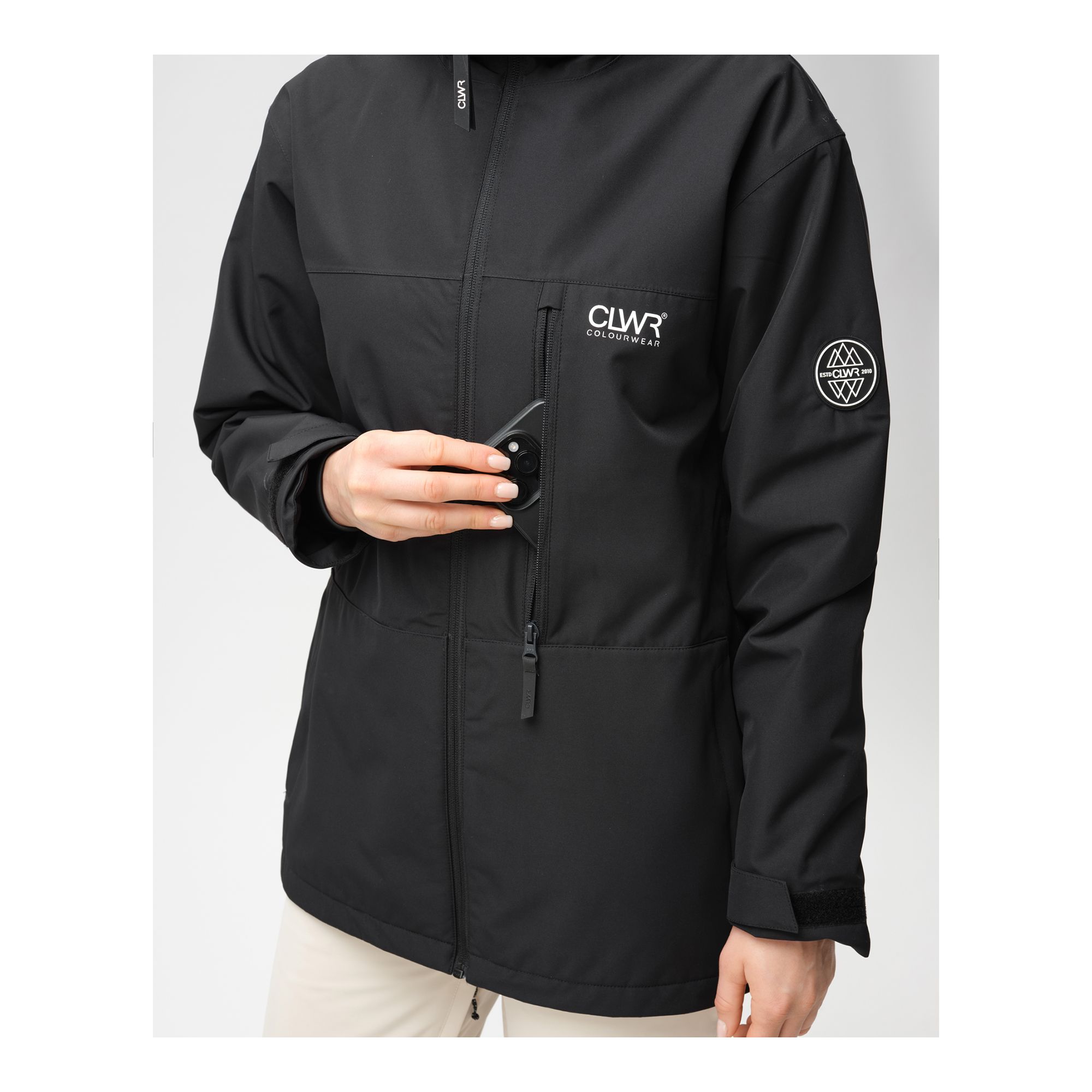 – Justerbar nederkant, ärmslut och fast huva med vertikal justering