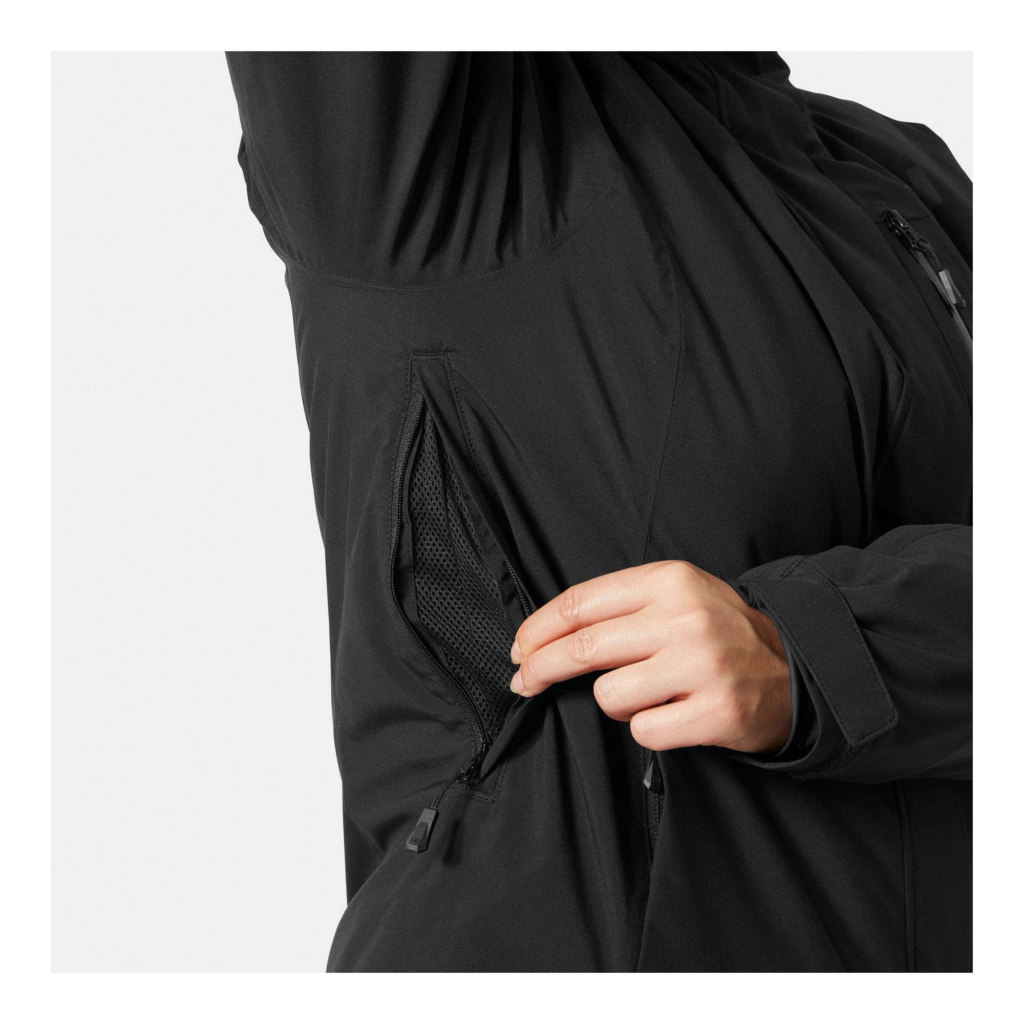 – Ventilationsdragkedjor under armarna