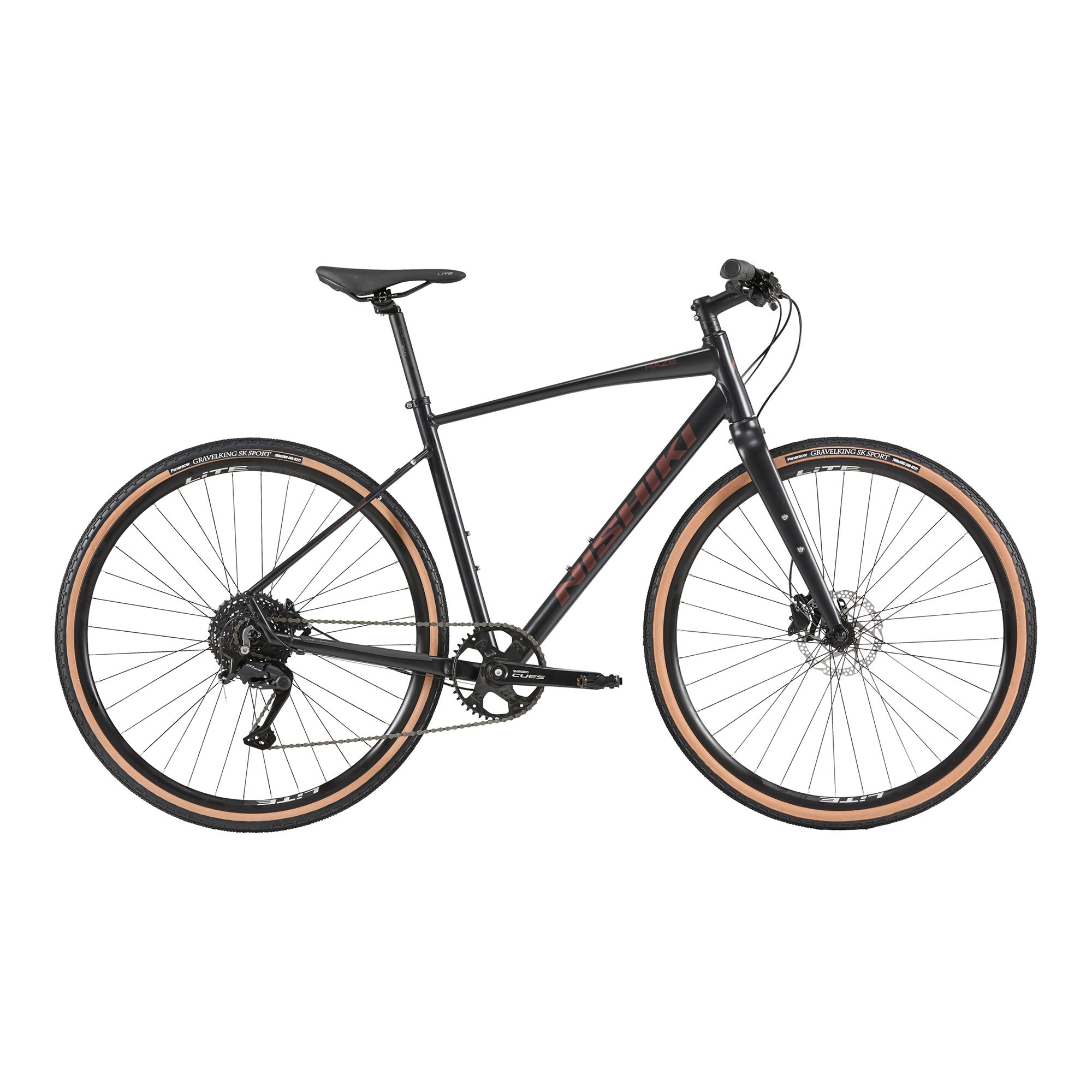 Nishiki Haze är en gravelcykel som vänder sig till dig som vill ha terrängfunktionerna från en gravelcykel kombinerat med komforten hos en racehybrid. Konstruktionen är anpassad för varierat underlag och ger en balanserad och stabil cykelupplevelse. Den är utrustad med Shimanos Cues Linkglide-drivlina som ger mjuk och pålitlig växling, vilket gör cyklingen jämn även under belastning. Den robusta konstruktionen i drivlinan bidrar till ökad hållbarhet och långvarig prestanda över tid. De breda däcken ger god framkomlighet och bättre grepp på grus och ojämna vägar, samtidigt som de bidrar till ökad komfort. Hydrauliska skivbromsar ger stark och kontrollerad bromskraft, vilket ökar säkerheten i både torra och blöta förhållanden. En cykel som är redo för tuffare utmaningar men samtidigt bekväm nog för längre turer.