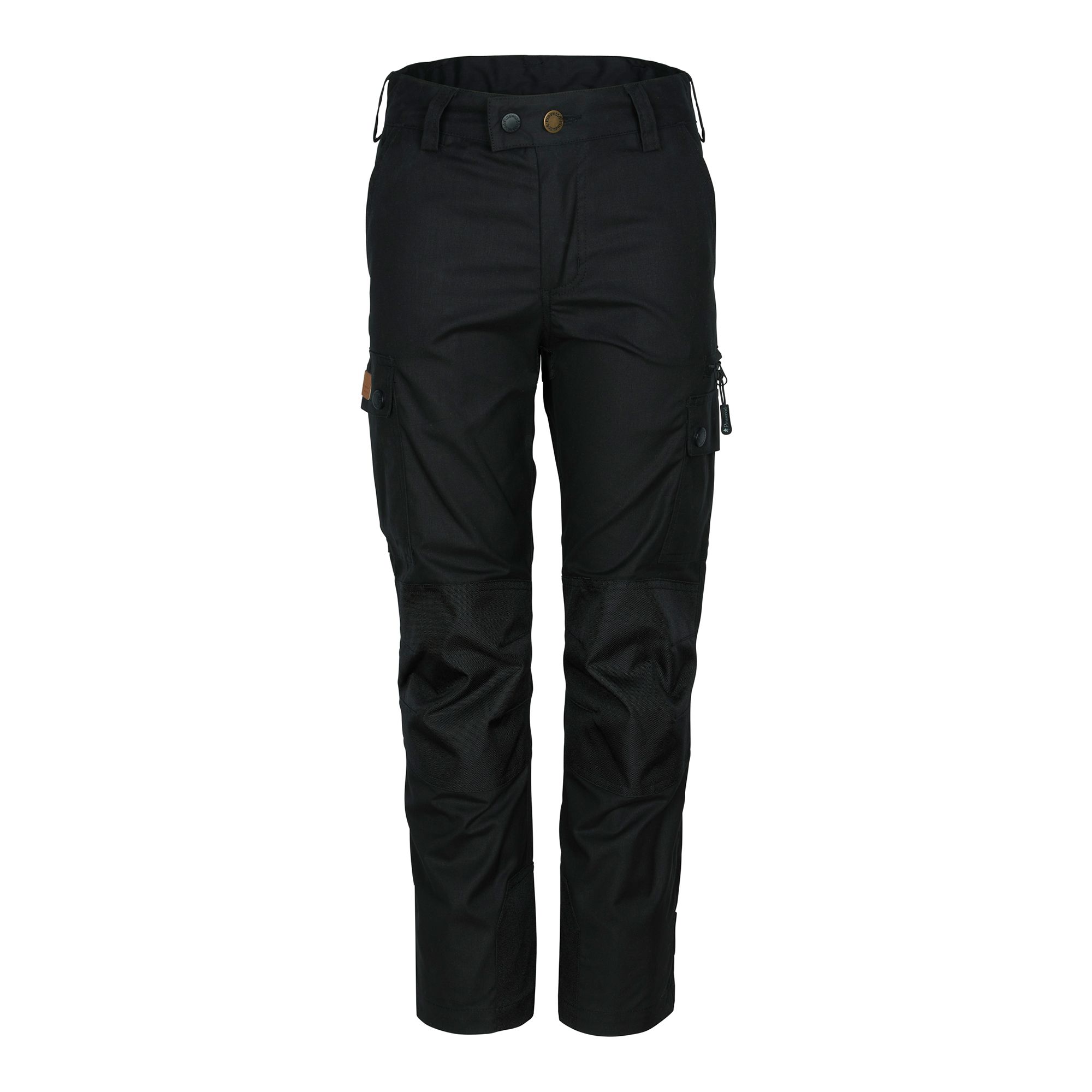 En funktionell byxa för våra barn! Förstärkningar på knän och bakdel. Resår i midja för extra komfort och passform. (Storlek 104-140 kan justeras med knappresår). Förböjda knän för optimal passform. Justerbara benslut. Tillverkas i vår slitstarka och luftiga TC-Lite. Behandlad med ekologisk impregnering – Bionic Finish® Eco för extra vatten- och smutsavstötande egenskaper. Flertalet praktiska fickor.