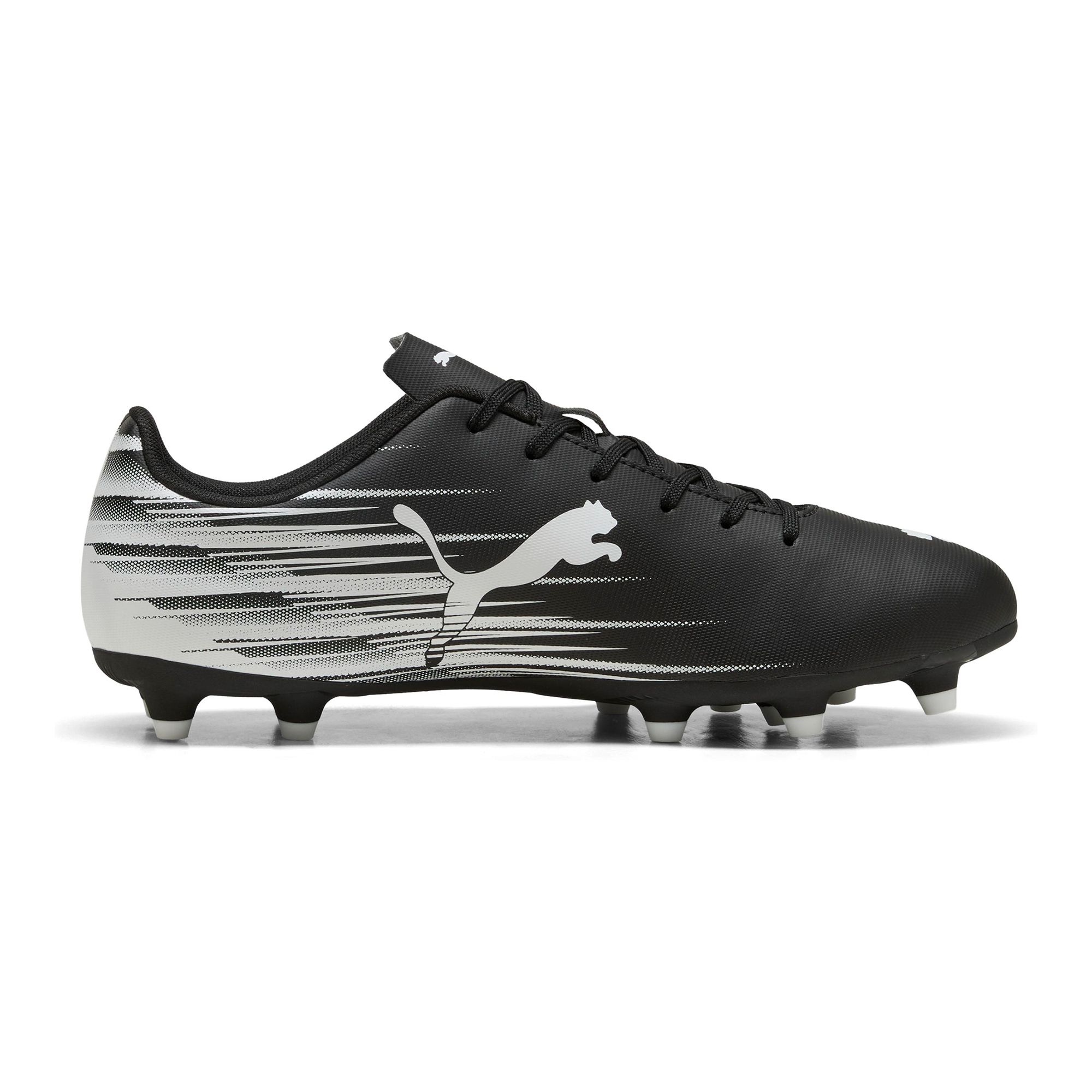 Puma Attacanto II FG/AG är fotbollsskor för dig som spelar med tempo, precision och ett offensivt självförtroende på planen. Den mjuka syntetiska ovandelen ger en följsam känsla mot foten och bidrar till bra bollkontakt vid både passningar och avslut. Den lätta konstruktionen hjälper dig att hålla hög rörlighet och snabba riktningsförändringar under hela matchen. Den rundade tån ger en bekväm passform som passar en bred målgrupp av spelare. Skorna är utrustade med en TPU-yttersula som ger stabilt grepp och bra fäste på både naturgräs och konstgräs. Snörningen framtill gör det enkelt att justera passformen för en säker och personlig känsla runt foten. Det textila fodret bidrar till ett behagligt klimat inuti skon under intensivt spel. Den platta hälkonstruktionen ger en balanserad och stabil grund i varje steg. Designen med dynamisk grafik ger ett modernt uttryck som syns tydligt på planen. Sammantaget är detta ett pålitligt val för dig som vill kombinera lätt vikt, kontroll och mångsidighet på olika underlag.