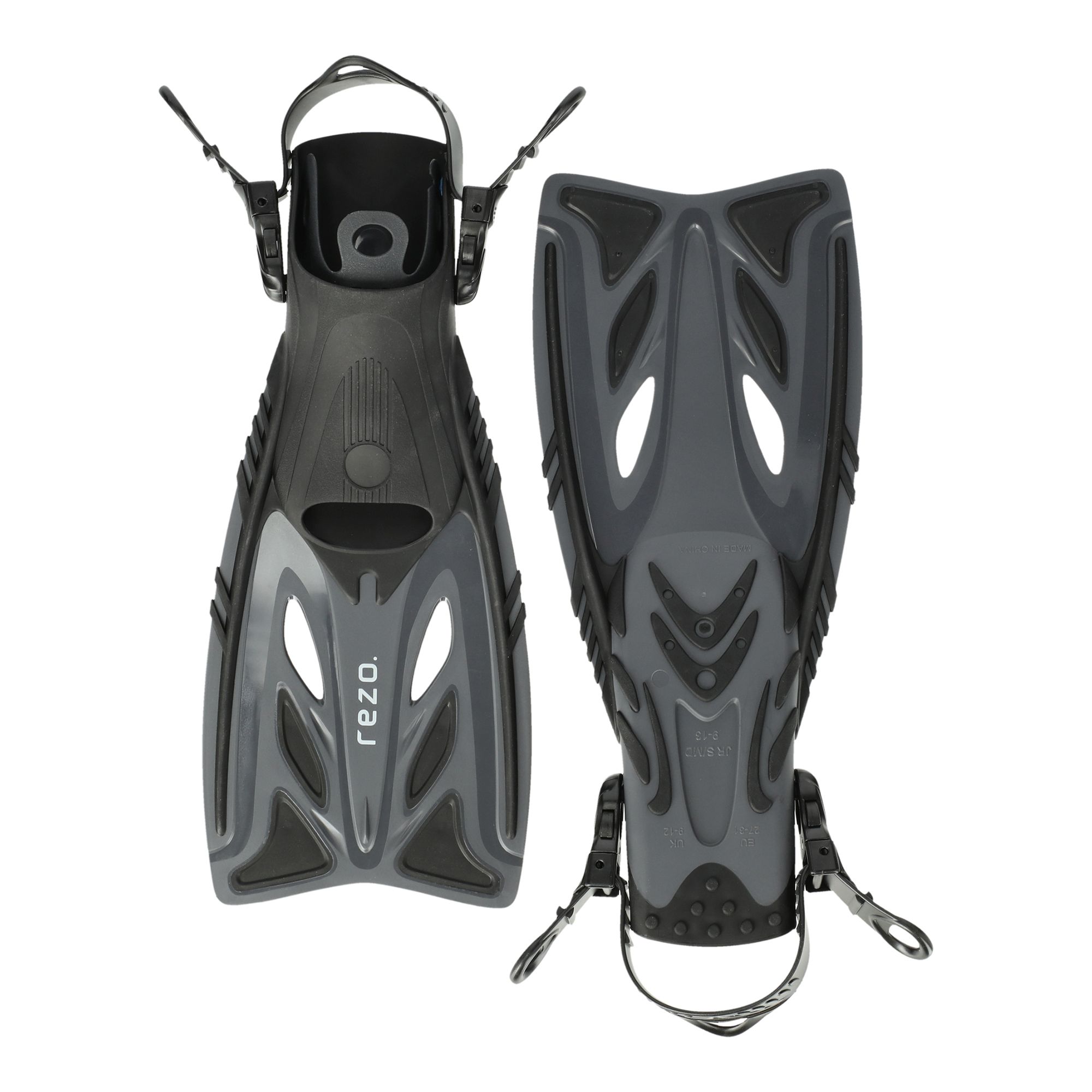 Rezo Matira Finns Jr är simfenor utvecklade för barn som vill utforska vattnet med bättre driv och stabilitet. Fenorna är tillverkade i en genomtänkt materialkombination som ger både flexibilitet och styrka, vilket hjälper barnet att ta sig fram smidigt och med mindre ansträngning. Den justerbara remmen gör det enkelt att anpassa passformen efter barnets fot, så fenorna sitter säkert och bekvämt under hela användningen. Konstruktionen ger effektiv framdrivning samtidigt som den är följsam mot foten, vilket passar bra för snorkling, dykning och lek i vatten. Fenorna kan användas barfota eller tillsammans med neoprensockor och är testade enligt gällande säkerhetsstandarder för extra trygghet.