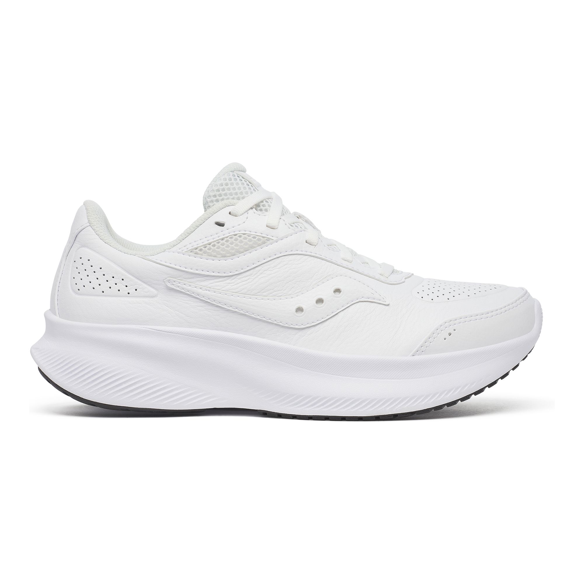 Saucony Integrity Metro W Walkingskor erbjuder neutral och skonsam stötdämpning som passar perfekt för dagliga promenader. Det förbättrade VersaRun-skummet tillsammans med en mjuk EVA-innersula ger en långvarigt bekväm känsla i varje steg. XT-900-gummizoner placerade i strategiska områden ger säkert grepp och god slitstyrka utan att kompromissa med flexibiliteten. Ovandelen i läder ger skon en tidlös och stilren look samtidigt som den formar sig bekvämt runt foten.