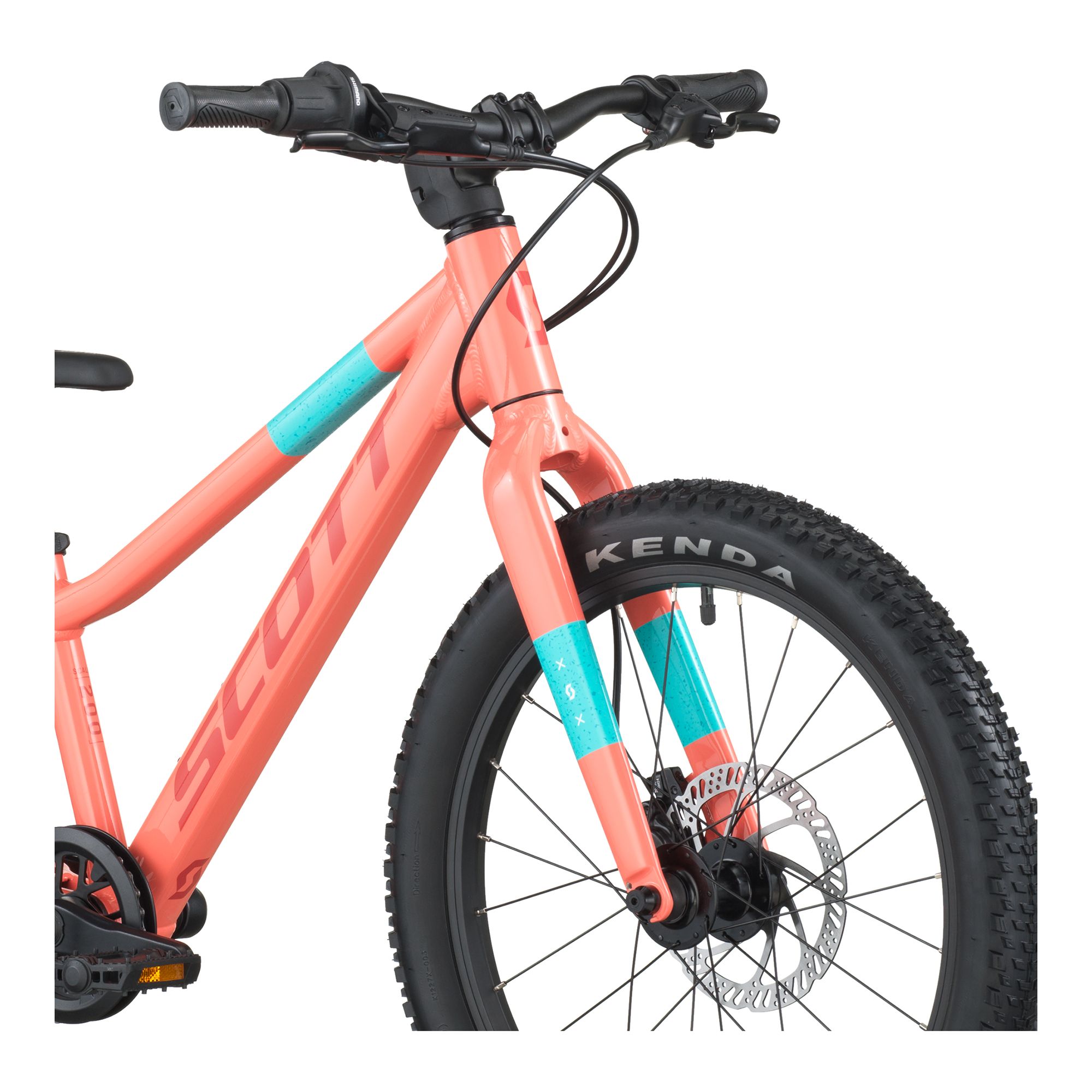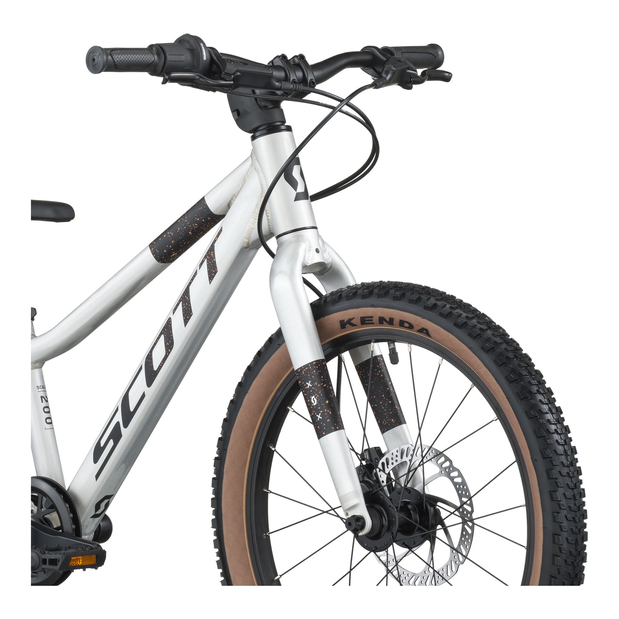 – Ram: Kids20 Disc, aluminium 6061, custom tubing, semi-integrerat styrlager, BB68, SCOTT dropout