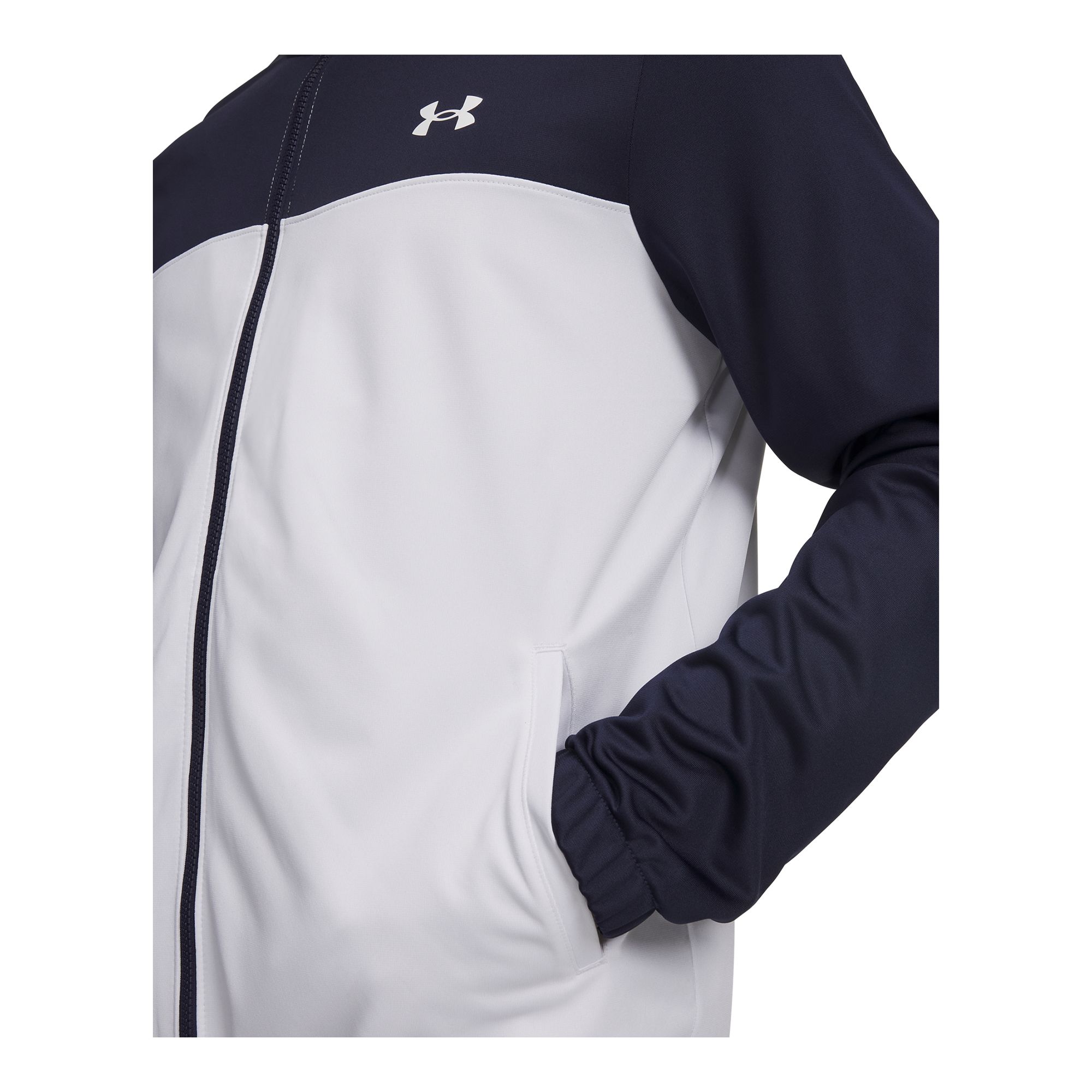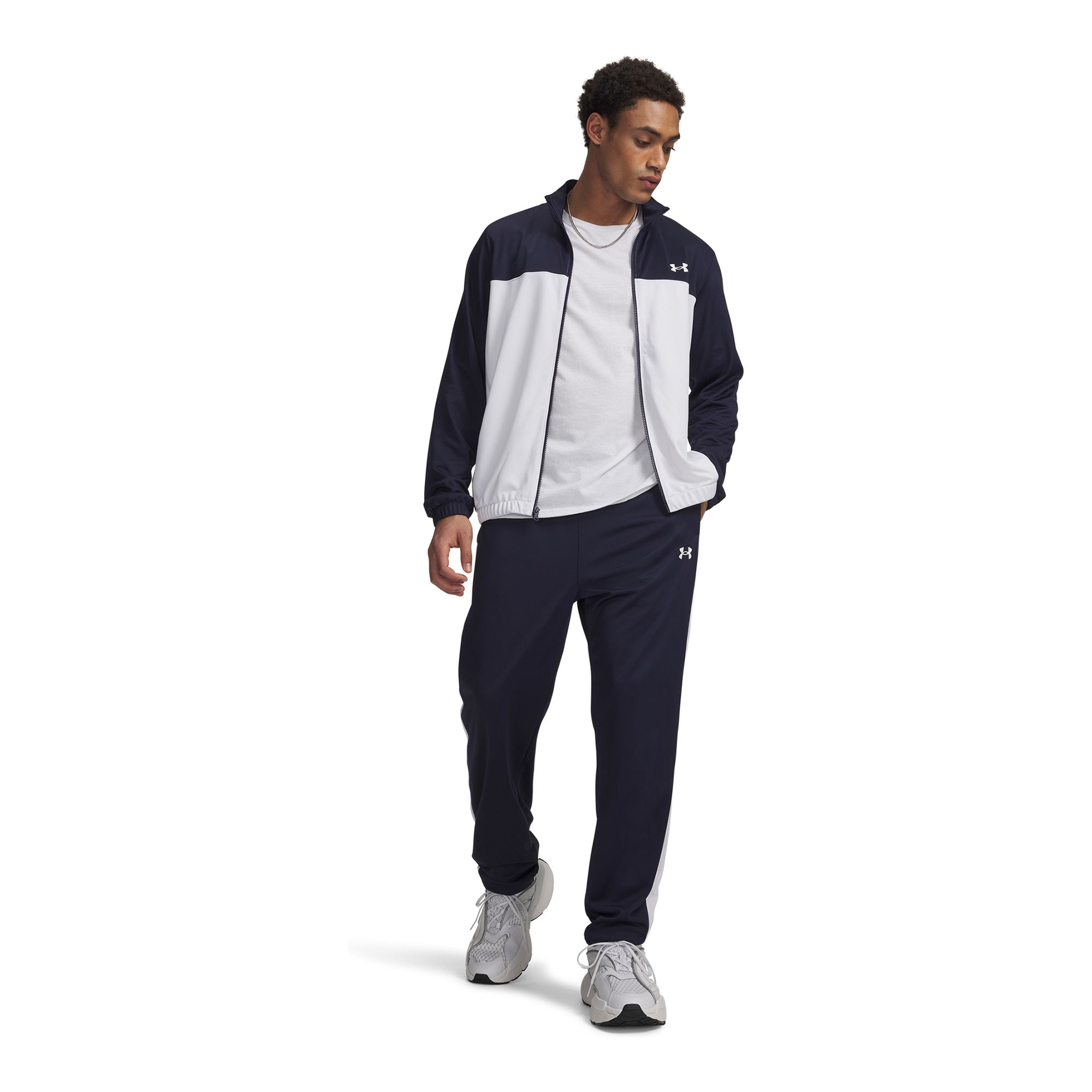 Under Armour UA Emea Tracksuit Novelty är en mångsidig träningsoverall som kombinerar komfort, värme och funktion för både träning och vardag. Yttermaterialet har en slät trikåstruktur som ger en följsam känsla, medan insidan är mjuk för ökad komfort och värme. Materialet transporterar bort svett och torkar snabbt för att hjälpa dig hålla en jämn och behaglig kroppstemperatur under aktivitet. Jackan har öppna handfickor som gör det enkelt att förvara småsaker eller värma händerna. Byxorna är utrustade med en elastisk linning och invändig dragsko som gör det lätt att justera passformen efter behov. Även byxorna har öppna handfickor för praktisk förvaring. Träningsoverallen säljs som ett set för en komplett och matchande look.