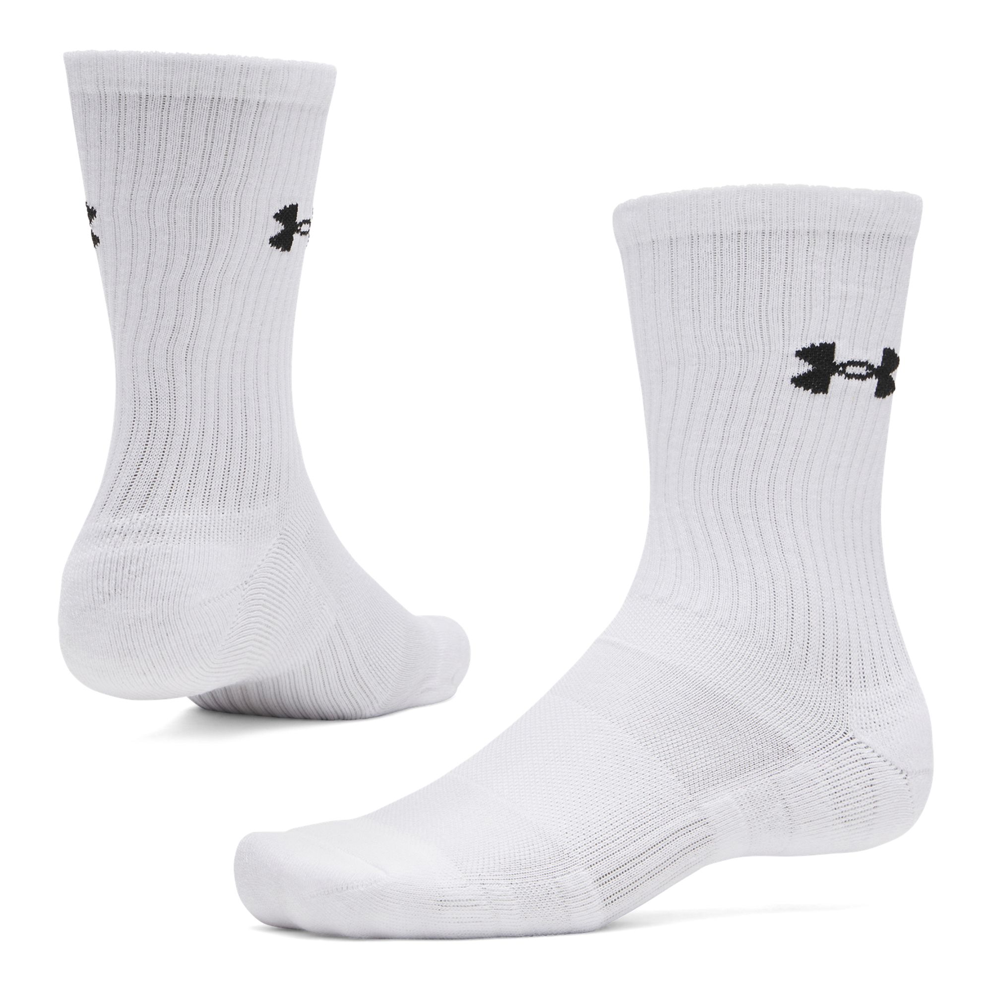 Under Armour UA Performance Cotton Crew 3-Pack är strumpor som kombinerar komfort och funktion för både vardag och träning. Den mjuka bomullsblandningen ger en behaglig känsla mot huden och gör dem sköna att bära hela dagen. Materialet leder bort fukt och torkar snabbt, vilket hjälper till att hålla fötterna torra även vid högre aktivitet. Den låsta hälkonstruktionen håller strumpan på plats och förhindrar att den glider under rörelse. Strategiska meshpaneler på ovansidan ökar ventilationen och bidrar till ett svalare klimat i skon. Den mediumtjocka dämpningen under foten ger extra komfort och skydd vid varje steg. En inbyggd bågsupport ger stabilitet och en säkrare passform. Förpackningen innehåller tre par strumpor för praktisk användning i vardagen.