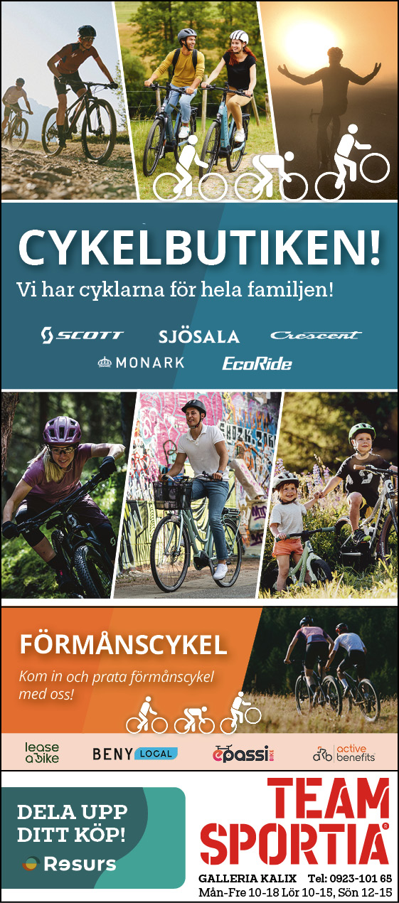 Vi på Team Sportia i Kalix brinner för sport, ett aktivt liv och nöjda kunder. Därför är ett bra bemötande, hög produktkunskap och ett genuint engagemang oerhört viktigt för oss. I butiken hittar du självklart kläder, skor och utrustning för löpning, längd, cykel, träning – ja allt för ett aktivt liv. Stora delar av vårt sortiment hittar du här på hemsidan, men i butiken hittar du alltid lite extra godbitar. Har du frågor om produkter eller vad vi har i lager så hör gärna av dig eller besök oss i butiken.